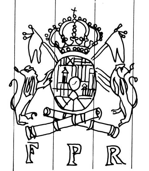 Tipo de filigrana: Doble Parte estudiada: Derecha Código del Motivo: T.04.01.01 Descripción: Filigrana doble. Filigrana izquierda: CAPELLADES. Filigrana derecha: escudo de España a los pies las iniciales FPR. Estructura: Tradicional de líneas Altura (mm): 90 Anchura (mm): 74 Tipo de papel: Verjurado Posición en la hoja: Derecha centro Nº de corondeles en la hoja: 19 Distancia entre corondeles: Situada entre el corondel 12 y el corondel 17 Posición en relación al texto: Origen de los datos: Datos obtenidos del original País de localizatión del molino: España Lugar del molino: Capellades, Barcelona. Fabricante: Felip Romaní Autor de los datos de este registro: María Dolores Díaz de Miranda Macías Tipo de uso: Papel sellado Estado de la hoja: Sin cortar bordes Altura de la hoja: 312 Anchura de la hoja: 426 Color de la hoja: Natural Institución: Archivo Municipal de Oviedo.