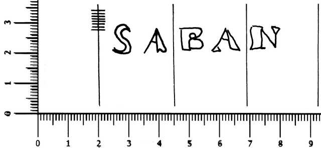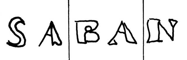 Tipo de filigrana: Sencilla Parte estudiada: Toda la filigrana Código del Motivo: W.02.01.00 Descripción: Letras SABAN (faltaría por defecto de la forma las letras CA). Estructura: Tradicional de líneas Altura (mm): 9 Anchura (mm): [56] Tipo de papel: Verjurado Posición en la hoja: Medio centro Nº de corondeles en la hoja: 9 Distancia entre corondeles: Situada entre el corondel 4 y el corondel 7 Posición en relación al texto: Origen de los datos: Datos obtenidos del original País de localizatión del molino: España Lugar del molino: Segovia. Nombre del molino: Molino de la Alameda Fabricante: Casaban Autor de los datos de este registro: María Dolores Díaz de Miranda Macías Tipo de uso: Papel para escribir Estado de la hoja: Cortados todos los bordes Altura de la hoja: 309 Anchura de la hoja: 215 Color de la hoja: Natural Institución: Archivo Municipal de Oviedo.
