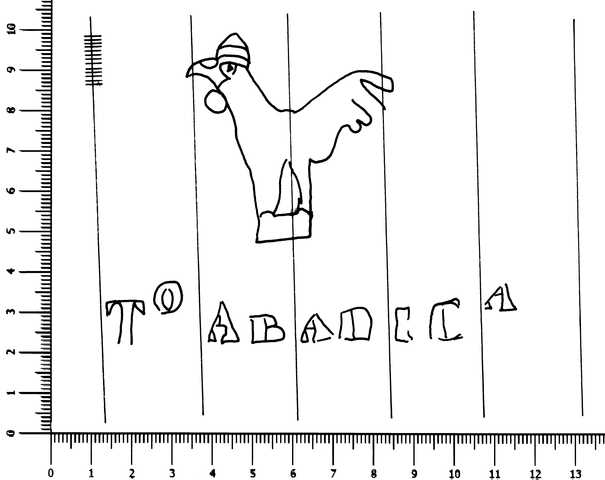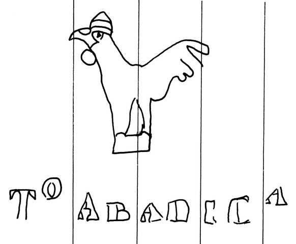 Tipo de filigrana: Sencilla Parte estudiada: Toda la filigrana Código del Motivo: D.05.00.00 Descripción: Gallo sobre una base y a los pies TO ABAD I CA . Estructura: Tradicional de líneas Altura (mm): 78 Anchura (mm): 102 Tipo de papel: Verjurado Posición en la hoja: Derecha centro Nº de corondeles en la hoja: 19 Distancia entre corondeles: Situada entre el corondel 11 y el corondel 16 Posición en relación al texto: Origen de los datos: Datos obtenidos del original País de localizatión del molino: España Lugar del molino: Alcoy, Alicante. Fabricante: Tadeo Abad y Compañía Autor de los datos de este registro: María Dolores Díaz de Miranda Macías Tipo de uso: Papel sellado Estado de la hoja: Sin cortar bordes Altura de la hoja: 313 Anchura de la hoja: 436 Color de la hoja: Natural Institución: Archivo Municipal de Oviedo.