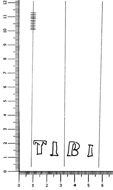 Tipo de filigrana: Doble Parte estudiada: Izquierda Código del Motivo: W.03.00.00 Descripción: Filigrana doble. Filigrana derecha: jarrón con tres cardos, en la base JN BARANA. Filigrana izquierda: TIBI. Estructura: Tradicional de líneas Altura (mm): 11 Anchura (mm): 43 Tipo de papel: Verjurado Posición en la hoja: Izquierda centro Nº de corondeles en la hoja: 19 Distancia entre corondeles: Situada entre el corondel 4 y el corondel 6 Posición en relación al texto: Origen de los datos: Datos obtenidos del original País de localizatión del molino: España Lugar del molino: Tibi, Valencia. Fabricante: Juan Barachina Autor de los datos de este registro: María Dolores Díaz de Miranda Macías Tipo de uso: Papel sellado Estado de la hoja: Cortado borde inferior Altura de la hoja: 312 Anchura de la hoja: 430 Color de la hoja: Natural Institución: Archivo Municipal de Oviedo.
