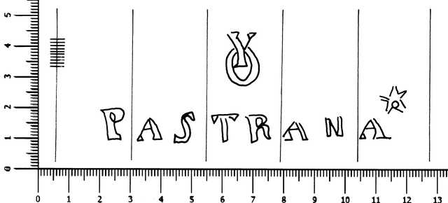 Tipo de filigrana: Sencilla Parte estudiada: Toda la filigrana Código del Motivo: W.03.00.00 Descripción: Letras iniciales entrelazadas verticalmente YO, debajo PASTRANA. Estructura: Tradicional de líneas Altura (mm): 36 Anchura (mm): 101 Tipo de papel: Verjurado Posición en la hoja: Medio centro Nº de corondeles en la hoja: 9 Distancia entre corondeles: Situada entre el corondel 3 y el corondel 8 Posición en relación al texto: Origen de los datos: Datos obtenidos del original País de localizatión del molino: España Lugar del molino: Pastrana, Guadalajara. Fabricante: Infantado Autor de los datos de este registro: María Dolores Díaz de Miranda Macías Tipo de uso: Papel para escribir Estado de la hoja: Cortados todos los bordes Altura de la hoja: 310 Anchura de la hoja: 217 Color de la hoja: Natural Institución: Archivo Municipal de Oviedo.