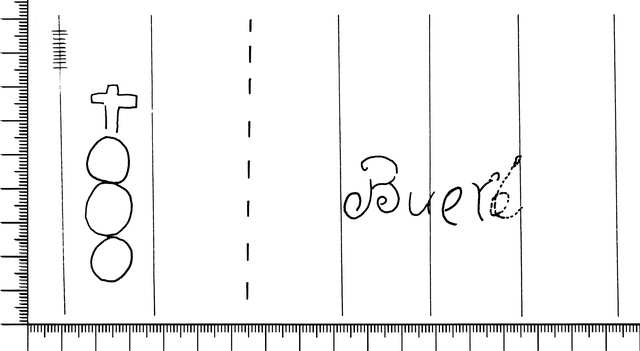 Tipo de filigrana: Doble Parte estudiada: Derecha Código del Motivo: W.02.01.00 Descripción: Filigrana doble. Filigrana izquierda: tres círculos surmontados por una cruz. Filigrana derecha: la palabra BUELL ? Estructura: Tradicional de líneas Altura (mm): 21 Anchura (mm): [53] Tipo de papel: Verjurado Posición en la hoja: Derecha centro Nº de corondeles en la hoja: 17 Distancia entre corondeles: Situada entre el corondel 12 y el corondel 15 Posición en relación al texto: Origen de los datos: Datos obtenidos del original País de localizatión del molino: Francia Fabricante: Buell ? Autor de los datos de este registro: María Dolores Díaz de Miranda Macías Tipo de uso: Papel para imprimir Estado de la hoja: Cortados todos los bordes Altura de la hoja: 293 Anchura de la hoja: 410 Color de la hoja: Natural Institución: Archivo Municipal de Oviedo.