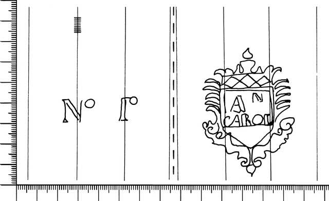 Tipo de filigrana: Doble Parte estudiada: Izquierda Código del Motivo: V.08.02.00 Descripción: Filigrana doble: Filigrana izquierda: Nº 1. Filigrana derecha: escudo en el interior AN CAROL. Estructura: Tradicional de líneas Altura (mm): 12 Anchura (mm): 37 Tipo de papel: Verjurado Posición en la hoja: Izquierda centro Nº de corondeles en la hoja: 19 Distancia entre corondeles: Situada entre el corondel 4 y el corondel 7 Posición en relación al texto: Origen de los datos: Datos obtenidos del original País de localizatión del molino: España Lugar del molino: La Riba, Tarragona. Fabricante: Antonio Carol Autor de los datos de este registro: María Dolores Díaz de Miranda Macías Tipo de uso: Papel sellado Estado de la hoja: Cortados todos los bordes Altura de la hoja: 309 Anchura de la hoja: 420 Color de la hoja: Natural Institución: Archivo Municipal de Oviedo.