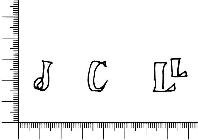 Tipo de filigrana: Contramarca Parte estudiada: Izquierda Código del Motivo: V.04.00.00 Descripción: Letras J C LL C. Estructura: Tradicional de líneas Altura (mm): 16 Anchura (mm): 74 Tipo de papel: Continuo Posición en la hoja: Izquierda inferior Distancia entre corondeles: Posición en relación al texto: Perpendicular al texto hacia arriba Origen de los datos: Datos obtenidos del original Información adicional: La filigrana principal es la 001274. País de localizatión del molino: España Lugar del molino: Cataluña Estado de la hoja: Sin cortar bordes Altura de la hoja: [311-315] Anchura de la hoja: [430-444] Color de la hoja: Natural Institución: Archivo Municipal de Oviedo.