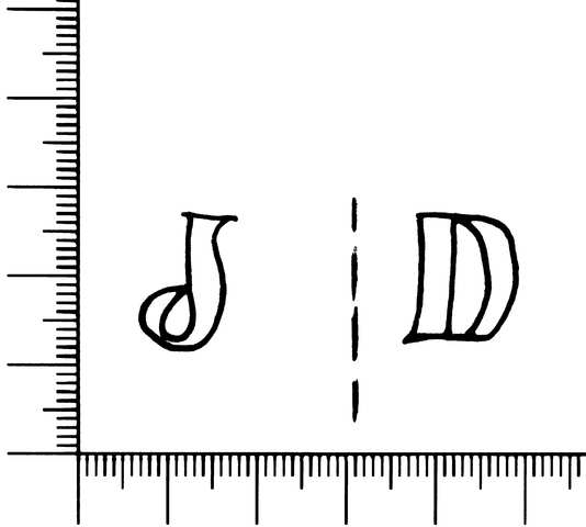 Tipo de filigrana: Contramarca Parte estudiada: Derecha Código del Motivo: V.02.01.00 Descripción: Letras J D. Estructura: Tradicional de líneas Altura (mm): 15 Anchura (mm): 9 Tipo de papel: Continuo Posición en la hoja: Derecha inferior Distancia entre corondeles: Posición en relación al texto: Perpendicular al texto hacia abajo Origen de los datos: Datos obtenidos del original Información adicional: La filigrana principal es la 001274. País de localizatión del molino: España Lugar del molino: Cataluña Estado de la hoja: Sin cortar bordes Altura de la hoja: [311-315] Anchura de la hoja: [430-444] Color de la hoja: Natural Institución: Archivo Municipal de Oviedo.