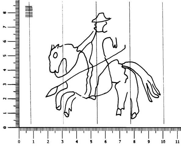 Tipo de filigrana: Sencilla Parte estudiada: Toda la filigrana Código del Motivo: A.01.08.02 Descripción: Rejoneador. Estructura: Tradicional de líneas Altura (mm): 75 Anchura (mm): 81 Tipo de papel: Verjurado Posición en la hoja: Derecha centro Nº de corondeles en la hoja: 19 Distancia entre corondeles: Situada entre el corondel 12 y el corondel 16 Posición en relación al texto: Origen de los datos: Datos obtenidos del original País de localizatión del molino: España Lugar del molino: Sant Pere de Riudebitlles, Barcelona. Fabricante: Josep Cardús Autor de los datos de este registro: María Dolores Díaz de Miranda Macías Tipo de uso: Papel para escribir Estado de la hoja: Cortados todos los bordes Altura de la hoja: 313 Anchura de la hoja: 436 Color de la hoja: Natural Institución: Archivo Municipal de Oviedo.