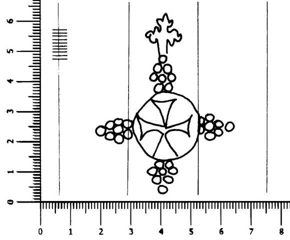 Tipo de filigrana: Sencilla Parte estudiada: Toda la filigrana Código del Motivo: U.01.02.02 Descripción: Círculo surmontado por una cruz lobulada y con una cruz griega en el interior. Estructura: Tradicional de líneas Altura (mm): 61 Anchura (mm): 46 Tipo de papel: Verjurado Posición en la hoja: Derecha centro Nº de corondeles en la hoja: 19 Distancia entre corondeles: Situada entre el corondel 13 y el corondel 16 Posición en relación al texto: Origen de los datos: Datos obtenidos del original País de localizatión del molino: España Lugar del molino: La Pobla de Claramunt, Barcelona. Fabricante: Boix Autor de los datos de este registro: María Dolores Díaz de Miranda Macías Tipo de uso: Papel sellado Estado de la hoja: Sin cortar bordes Altura de la hoja: 312 Anchura de la hoja: 410 Color de la hoja: Natural Institución: Archivo Municipal de Oviedo.