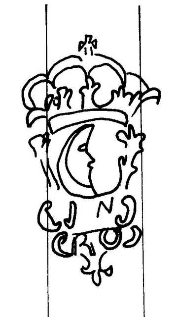 Tipo de filigrana: Sencilla Parte estudiada: Toda la filigrana Código del Motivo: T.02.06.02 Descripción: Escudo coronado con media luna en el interior; a los pies las iniciales JN / Rº. Estructura: Tradicional de líneas Altura (mm): 60 Anchura (mm): 34 Tipo de papel: Verjurado Posición en la hoja: Derecha centro Nº de corondeles en la hoja: 19 Distancia entre corondeles: Situada entre el corondel 13 y el corondel 16 Posición en relación al texto: Origen de los datos: Datos obtenidos del original País de localizatión del molino: España Lugar del molino: La Riba, Tarragona. Nombre del molino: Molino de Garreta Fabricante: Joan Romaní i Massana Autor de los datos de este registro: María Dolores Díaz de Miranda Macías Tipo de uso: Papel sellado Estado de la hoja: Cortado borde izquierdo Altura de la hoja: 315 Anchura de la hoja: 430 Color de la hoja: Natural Institución: Archivo Municipal de Oviedo.