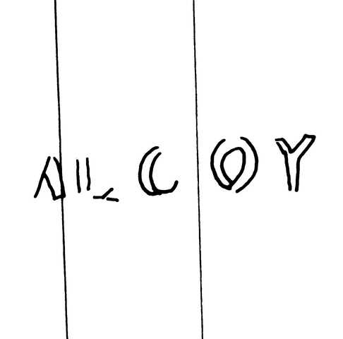 Tipo de filigrana: Doble Parte estudiada: Derecha Código del Motivo: W.03.00.00 Descripción: Filigrana doble. Filigrana derecha: ALCOY. Filigrana izquierda: óvalo con el escudo de la Merced, en la base JF Barceló. Estructura: Tradicional de líneas Altura (mm): 8 Anchura (mm): 49 Tipo de papel: Verjurado Posición en la hoja: Derecha centro Nº de corondeles en la hoja: 19 Distancia entre corondeles: Situada entre el corondel 14 y el corondel 17 Posición en relación al texto: Origen de los datos: Datos obtenidos del original País de localizatión del molino: España Lugar del molino: Alcoy, Alicante. Fabricante: José Barceló Autor de los datos de este registro: María Dolores Díaz de Miranda Macías Tipo de uso: Papel sellado Estado de la hoja: Sin cortar bordes Altura de la hoja: 315 Anchura de la hoja: 436 Color de la hoja: Natural Institución: Archivo Municipal de Oviedo.