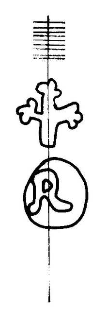 Tipo de filigrana: Sencilla Parte estudiada: Toda la filigrana Código del Motivo: U.01.03.00 Descripción: Círculo con una R sobremontado por una cruz lobulada. Estructura: Tradicional de líneas Altura (mm): 31 Anchura (mm): 14 Tipo de papel: Verjurado Posición en la hoja: Distancia entre corondeles: Posición en relación al texto: Origen de los datos: Datos obtenidos de una repro Información adicional: Esta filigrana ha sido publicada por Oriol VALLS i SUBIRÁ, Paper and Watermarks in Catalonia. T. I-II. Amsterdam: The Paper Publications Society, 1970, filigrana nº 771. La imagen que se ofrece es un calco manual de la filigrana publicada y parte de los d País de localizatión del molino: España Lugar del molino: Cataluña Fabricante: Romaní ? Autor de los datos de este registro: María Dolores Díaz de Miranda Macías Estado de la hoja: Altura de la hoja: Anchura de la hoja: Color de la hoja: Institución: Archivo Municipal de Manresa, Barcelona.