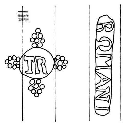 Tipo de filigrana: Doble Parte estudiada: Izquierda Código del Motivo: U.01.02.01 Descripción: Filigrana doble. Filigrana izquierda: círculo con las iniciales TR en el interior. Filigrana derecha: colocada verticalmente, el nombre ROMANI. Estructura: Tradicional de líneas Altura (mm): 48 Anchura (mm): 44 Tipo de papel: Verjurado Posición en la hoja: Distancia entre corondeles: Posición en relación al texto: Origen de los datos: Datos obtenidos de una repro Información adicional: Esta filigrana ha sido publicada por Oriol VALLS i SUBIRÁ, Paper and Watermarks in Catalonia. T. I-II. Amsterdam: The Paper Publications Society, 1970, filigrana nº 804. La imagen que se ofrece es un calco manual de la filigrana publicada y parte de los d País de localizatión del molino: España Lugar del molino: Capellades, Barcelona, Cataluña Fabricante: Tomás Romaní. Autor de los datos de este registro: María Dolores Díaz de Miranda Macías Estado de la hoja: Altura de la hoja: Anchura de la hoja: Color de la hoja: Institución: Archivo Municipal de Oviedo.