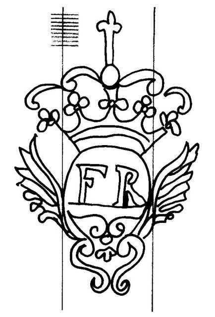 Tipo de filigrana: Sencilla Parte estudiada: Toda la filigrana Código del Motivo: T.02.17.00 Descripción: Escudo con las iniciales FR en el interior. Estructura: Tradicional de líneas Altura (mm): 74 Anchura (mm): 48 Tipo de papel: Verjurado Posición en la hoja: Distancia entre corondeles: Posición en relación al texto: Origen de los datos: Datos obtenidos de una repro Información adicional: Esta filigrana ha sido publicada por Oriol VALLS i SUBIRÁ, Paper and Watermarks in Catalonia. T. I-II. Amsterdam: The Paper Publications Society, 1970, filigrana nº 815. . La imagen que se ofrece es un calco manual de la filigrana publicada y parte de los País de localizatión del molino: España Lugar del molino: Barcelona, Cataluña Fabricante: Francesc Romaní i Soteras. Autor de los datos de este registro: María Dolores Díaz de Miranda Macías Estado de la hoja: Altura de la hoja: Anchura de la hoja: Color de la hoja: Institución: Departamento de Historia del Papel de los Museos Municipales de