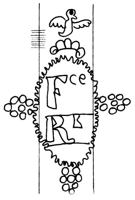 Tipo de filigrana: Sencilla Parte estudiada: Toda la filigrana Código del Motivo: U.01.02.01 Descripción: Ciículo festoneado, encima una paloma; en el interior las iniciales Fce R. Estructura: Tradicional de líneas Altura (mm): 81 Anchura (mm): 51 Tipo de papel: Verjurado Posición en la hoja: Distancia entre corondeles: Posición en relación al texto: Origen de los datos: Datos obtenidos de una repro Información adicional: Esta filigrana ha sido publicada por Oriol VALLS i SUBIRÁ, Paper and Watermarks in Catalonia. T. I-II. Amsterdam: The Paper Publications Society, 1970, filigrana nº 821. . La imagen que se ofrece es un calco manual de la filigrana publicada y parte de los País de localizatión del molino: España Lugar del molino: Capellades, Barcelona, Cataluña Fabricante: Francesc Romaní i Soteras. Autor de los datos de este registro: María Dolores Díaz de Miranda Macías Estado de la hoja: Altura de la hoja: Anchura de la hoja: Color de la hoja: Institución: Archivo Municipal de Manresa, Barcelona.