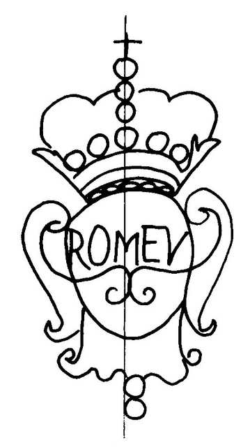 Tipo de filigrana: Sencilla Parte estudiada: Toda la filigrana Código del Motivo: T.02.17.00 Descripción: Escudo con corona; en el interior la palabra ROMEV. Estructura: Tradicional de líneas Altura (mm): 77 Anchura (mm): 36 Tipo de papel: Verjurado Posición en la hoja: Distancia entre corondeles: Posición en relación al texto: Origen de los datos: Datos obtenidos de una repro Información adicional: GAYOSO, G. Historia del Papel en España. T. I-III. Lugo: Diputación Provincial, 1994, filigrana nº 238. La imagen que se ofrece es un calco manual de la filigrana publicada y parte de los datos son resultado de su estudio. País de localizatión del molino: España Lugar del molino: Capellades, Barcelona, Cataluña Fabricante: Romeu. Autor de los datos de este registro: María Dolores Díaz de Miranda Macías Estado de la hoja: Altura de la hoja: Anchura de la hoja: Color de la hoja: Signatura: Libro impreso. “Espectáculo de la naturaleza..” de Abad M. Pluche, parte VIII, tomo XIII, 2ª edición