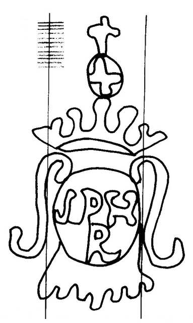 Tipo de filigrana: Sencilla Parte estudiada: Toda la filigrana Código del Motivo: T.02.17.00 Descripción: Escudo sobremontado por corona; en el interior las iniciales JPH R. Estructura: Tradicional de líneas Altura (mm): 75 Anchura (mm): 45 Tipo de papel: Verjurado Posición en la hoja: Distancia entre corondeles: Posición en relación al texto: Origen de los datos: Datos obtenidos de una repro Información adicional: Esta filigrana ha sido publicada por Oriol VALLS i SUBIRÁ, Paper and Watermarks in Catalonia. T. I-II. Amsterdam: The Paper Publications Society, 1970, filigrana nº 873. La imagen que se ofrece es un calco manual de la filigrana publicada y parte de los d País de localizatión del molino: España Lugar del molino: Capellades, Barcelona, Cataluña Fabricante: Josep Romeu. Estado de la hoja: Altura de la hoja: Anchura de la hoja: Color de la hoja: Fondo: Fondo Municipal.