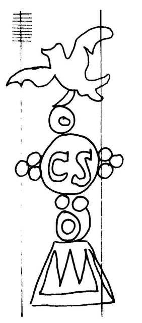Tipo de filigrana: Sencilla Parte estudiada: Toda la filigrana Código del Motivo: S.15.01.99 Descripción: Relicario sobremontado por una paloma, con las iniciales CS en su interior. Estructura: Tradicional de líneas Altura (mm): 85 Anchura (mm): 33 Tipo de papel: Verjurado Posición en la hoja: Distancia entre corondeles: Posición en relación al texto: Origen de los datos: Datos obtenidos de una repro Información adicional: Esta filigrana ha sido publicada por Oriol VALLS i SUBIRÁ, Paper and Watermarks in Catalonia. T. I-II. Amsterdam: The Paper Publications Society, 1970, filigrana nº 938. La imagen que se ofrece es un calco manual de la filigrana publicada y parte de los d País de localizatión del molino: España Lugar del molino: Capellades, Comarca de l'Anoia, Barcelona, Cataluña Fabricante: Cayetano Serra ? Estado de la hoja: Altura de la hoja: Anchura de la hoja: Color de la hoja: Signatura: Legajo 32, documento 1463 (documento militar).