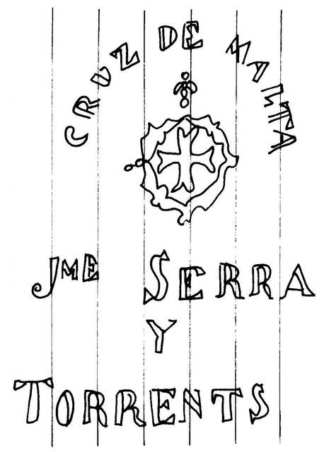 Tipo de filigrana: Sencilla Parte estudiada: Toda la filigrana Código del Motivo: T.02.15.03 Descripción: Cruz de Malta dentro de un círculo orlado sobremontada por las palabras CRUZ DE MALTA y a los pies JME SERRA Y TORRENTS. Estructura: Tradicional de líneas Altura (mm): 106 Anchura (mm): 78 Tipo de papel: Verjurado Posición en la hoja: Distancia entre corondeles: Posición en relación al texto: Origen de los datos: Datos obtenidos de una repro Información adicional: Esta filigrana ha sido publicada por Oriol VALLS i SUBIRÁ, Paper and Watermarks in Catalonia. T. I-II. Amsterdam: The Paper Publications Society, 1970, filigrana nº 935. La imagen que se ofrece es un calco manual de la filigrana publicada y parte de los d País de localizatión del molino: España Lugar del molino: Capellades, Barcelona, Cataluña Fabricante: Jaime Serra y Torrents. Estado de la hoja: Altura de la hoja: Anchura de la hoja: Color de la hoja: Signatura: Colección de Don Wenceslao Guarro, Barcelona.
