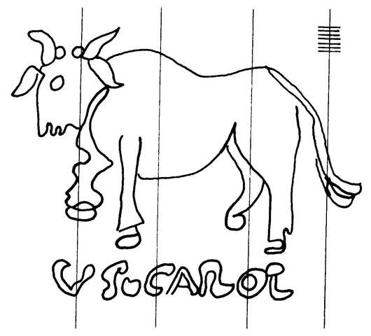 Tipo de filigrana: Sencilla Parte estudiada: Toda la filigrana Código del Motivo: C.01.01.00 Descripción: Toro; en la base VS CAROL. Estructura: Tradicional de líneas Altura (mm): 77 Anchura (mm): 100 Tipo de papel: Verjurado Posición en la hoja: Distancia entre corondeles: Posición en relación al texto: Origen de los datos: Datos obtenidos de una repro Información adicional: Esta filigrana ha sido publicada por Oriol VALLS i SUBIRÁ, Paper and Watermarks in Catalonia. T. I-II. Amsterdam: The Paper Publications Society, 1970, filigrana nº 197. La imagen que se ofrece es un calco manual de la filigrana publicada y parte de los d País de localizatión del molino: España Fabricante: Vicente Carol. Estado de la hoja: Altura de la hoja: Anchura de la hoja: Color de la hoja: País de uso del papel: España