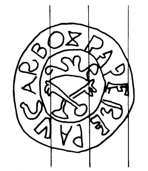 Tipo de filigrana: Sencilla Parte estudiada: Toda la filigrana Código del Motivo: S.10.99.00 Descripción: Dos llaves cruzadas rodeadas por un círculo con el texto PAV CARBO PAPERE. Estructura: Tradicional de líneas Altura (mm): 53 Anchura (mm): 50 Tipo de papel: Verjurado Posición en la hoja: Distancia entre corondeles: Posición en relación al texto: Origen de los datos: Datos obtenidos de una repro Información adicional: Esta filigrana ha sido publicada por Oriol VALLS i SUBIRÁ, Paper and Watermarks in Catalonia. T. I-II. Amsterdam: The Paper Publications Society, 1970, filigrana nº 168. La imagen que se ofrece es un calco manual de la filigrana publicada y parte de los País de localizatión del molino: España Lugar del molino: Torrelavit, Barcelona, Cataluña Fabricante: Pau Carbo. Estado de la hoja: Altura de la hoja: Anchura de la hoja: Color de la hoja: Institución: Archivo Histórico de la Ciudad de Barcelona.
