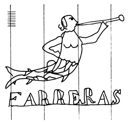 Tipo de filigrana: Sencilla Parte estudiada: Toda la filigrana Código del Motivo: F.07.03.00 Descripción: Sirena tocando la trompeta; a los pies la palabra FARRERAS. Estructura: Tradicional de líneas Altura (mm): 63 Anchura (mm): 82 Tipo de papel: Verjurado Posición en la hoja: Distancia entre corondeles: Posición en relación al texto: Origen de los datos: Datos obtenidos de una repro Información adicional: Esta filigrana ha sido publicada por Oriol VALLS i SUBIRÁ, Paper and Watermarks in Catalonia. T. I-II. Amsterdam: The Paper Publications Society, 1970, filigrana nº 354. La imagen que se ofrece es un calco manual de la filigrana publicada y parte de los País de localizatión del molino: España Lugar del molino: Sant Pere de Riudebitlles o Sant Quintí de Mediona, Barcelona, Cataluña Fabricante: Francesc Farreras. Estado de la hoja: Altura de la hoja: Anchura de la hoja: Color de la hoja: Institución: Archivo Histórico de la Ciudad de Barcelona.