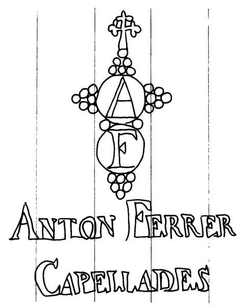 Tipo de filigrana: Sencilla Parte estudiada: Toda la filigrana Código del Motivo: U.02.02.04 Descripción: Dos círculos surmontados por una cruz lobulada; en el círculo superior la inicial A y en el inferior la F; en la base las palabras ANTON FERRER CAPELLADES. Estructura: Tradicional de líneas Altura (mm): 115 Anchura (mm): 92 Tipo de papel: Verjurado Posición en la hoja: Distancia entre corondeles: Posición en relación al texto: Origen de los datos: Datos obtenidos de una repro Información adicional: GAYOSO, G. Historia del Papel en España. T. I-III. Lugo: Diputación Provincial, 1994, filigrana nº 159. La imagen que se ofrece es un calco manual de la filigrana publicada y parte de los datos son resultado de su estudio. País de localizatión del molino: España Lugar del molino: Capellades, Barcelona, Cataluña Fabricante: Antonio Ferrer. Estado de la hoja: Altura de la hoja: Anchura de la hoja: Color de la hoja: Signatura: Colección de Carro García
