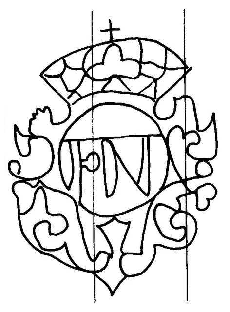 Tipo de filigrana: Sencilla Parte estudiada: Toda la filigrana Código del Motivo: T.02.17.00 Descripción: Escudo coronado con una cartela interior con la iniciales FN. Estructura: Tradicional de líneas Altura (mm): 66 Anchura (mm): 50 Tipo de papel: Verjurado Posición en la hoja: Distancia entre corondeles: Posición en relación al texto: Origen de los datos: Datos obtenidos de una repro Información adicional: Esta filigrana ha sido publicada por Oriol VALLS i SUBIRÁ, Paper and Watermarks in Catalonia. T. I-II. Amsterdam: The Paper Publications Society, 1970, filigrana nº 424. La imagen que se ofrece es un calco manual de la filigrana publicada y parte de los País de localizatión del molino: España Lugar del molino: La Riba, Tarragona ? Fabricante: Font ? Estado de la hoja: Altura de la hoja: Anchura de la hoja: Color de la hoja: Institución: Archivo Municipal de Manresa, Barcelona.