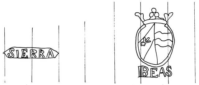 Tipo de filigrana: Doble Parte estudiada: Derecha Código del Motivo: T.03.02.00 Descripción: Filigrana doble. Filigrana izquierda: cartela con la palabra SIERRA. Filigrana derecha: escudo con barras cargadas de flor de Lis y olas del mar; a los pies la palabra IBEAS. Estructura: Tradicional de líneas Altura (mm): 61 Anchura (mm): 34 Tipo de papel: Verjurado Posición en la hoja: Distancia entre corondeles: Posición en relación al texto: Origen de los datos: Datos obtenidos de una repro Información adicional: GAYOSO, G. Historia del Papel en España. T. I-III. Lugo: Diputación Provincial, 1994, filigrana nº 92. La imagen que se ofrece es un calco manual de la filigrana publicada y parte de los datos son resultado de su estudio. País de localizatión del molino: España Lugar del molino: Ibeas de Juarros, Burgos. Fabricante: Marco. Estado de la hoja: Altura de la hoja: Anchura de la hoja: Color de la hoja: País de uso del papel: España