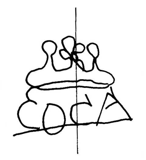 Tipo de filigrana: Sencilla Parte estudiada: Toda la filigrana Código del Motivo: W.02.02.00 Descripción: Cartela coronada con COCA. Estructura: Tradicional de líneas Altura (mm): 33 Anchura (mm): 39 Tipo de papel: Verjurado Posición en la hoja: Distancia entre corondeles: Posición en relación al texto: Origen de los datos: Datos obtenidos de una repro Información adicional: Esta filigrana ha sido publicada por Oriol VALLS i SUBIRÁ, Paper and Watermarks in Catalonia. T. I-II. Amsterdam: The Paper Publications Society, 1970, filigrana nº 267. La imagen que se ofrece es un calco manual de la filigrana publicada y parte de los País de localizatión del molino: España Lugar del molino: Cataluña Fabricante: Coca. Estado de la hoja: Altura de la hoja: Anchura de la hoja: Color de la hoja: País de uso del papel: España