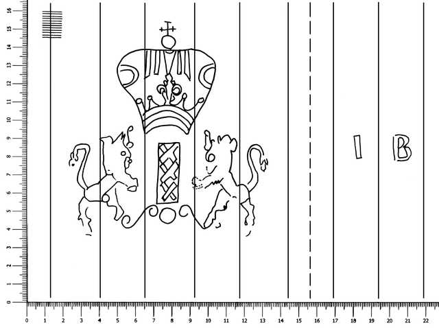 Tipo de filigrana: Doble Parte estudiada: Izquierda Código del Motivo: T.04.02.02 Descripción: Filigranan doble. Filigrnana izquierda: Escudo de Amsterdan, escudo con las tres cruces de San Andrés, franqueado a derecha e izquierda por un león y surmontado por corona. Filigranan derecha: las iniciales IB. Estructura: Tradicional de líneas Altura (mm): 115 Anchura (mm): 109 Tipo de papel: Verjurado Posición en la hoja: Izquierda centro Nº de corondeles en la hoja: 17 Distancia entre corondeles: Situada entre el corondel 3 y el corondel 8 Posición en relación al texto: Origen de los datos: Datos obtenidos del original País de localizatión del molino: Francia ? Fabricante: I.B. Tipo de uso: Papel para escribir Estado de la hoja: Cortados todos los bordes Altura de la hoja: 310 Anchura de la hoja: 410 Color de la hoja: Natural Institución: Archivo Municipal de Oviedo.