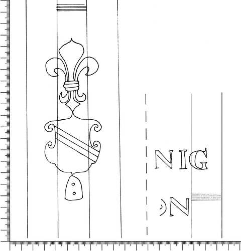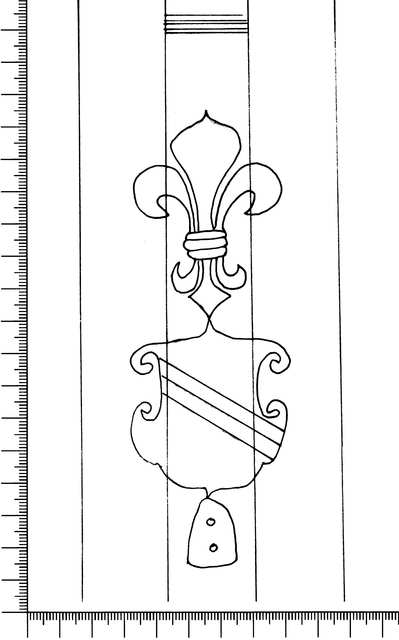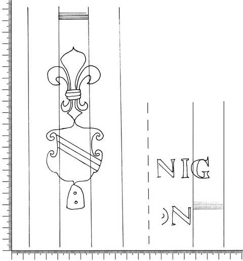 Tipo de filigrana: Doble Parte estudiada: Izquierda Código del Motivo: T.01.06.00 Descripción: Filigrana izquierda: escudo con banda cruzada. Encima flor de lis. Debajo panal. Filigrana derecha: letras [HO]NIG [&] [ZO]ON. Estructura: Tradicional de líneas Altura (mm): 142 Anchura (mm): 50 Tipo de papel: Verjurado Posición en la hoja: Izquierda centro Nº de corondeles en la hoja: 16 Distancia entre corondeles: Posición en relación al texto: Origen de los datos: Datos obtenidos del original Información adicional: Escudo con banda cruzada con flor de lis en la parte superior País de localizatión del molino: Holanda Lugar del molino: Holanda Región de Zaandijk. Holanda septentrional Fabricante: Jan Jbz Honing con su hijo Jacob Jbz Honing. Empresa: J HONIG & ZOON Autor de los datos de este registro: María Dolores Díaz de Miranda Macías Estado de la hoja: Cortados todos los bordes Altura de la hoja: 430 Anchura de la hoja: 480 Color de la hoja: Natural Institución: Particular