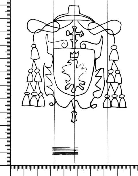 Tipo de filigrana: Sencilla Parte estudiada: Toda la filigrana Código del Motivo: T.04.06.03 Descripción: Escudo cardenal. Estructura: Tradicional de líneas Altura (mm): 88 Anchura (mm): 89 Tipo de papel: Verjurado Posición en la hoja: Medio centro Distancia entre corondeles: Posición en relación al texto: Origen de los datos: Datos obtenidos del original Autor de los datos de este registro: María Dolores Díaz de Miranda Macías Estado de la hoja: Cortados todos los bordes Altura de la hoja: 215 Anchura de la hoja: 314 Color de la hoja: Natural Institución: Archivo Municipal de Oviedo.