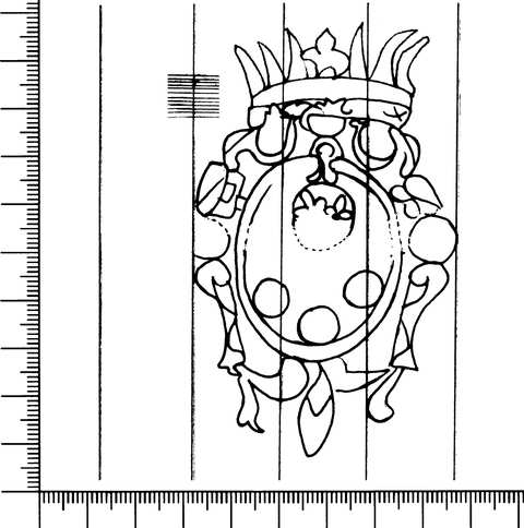 Tipo de filigrana: Sencilla Parte estudiada: Toda la filigrana Código del Motivo: T.04.07.00 Descripción: Escudo con tres círculos en su interior. Escudo de los Médecis Estructura: Tradicional de líneas Altura (mm): 95 Anchura (mm): 55 Tipo de papel: Verjurado Posición en la hoja: Medio centro Distancia entre corondeles: Posición en relación al texto: Origen de los datos: Datos obtenidos del original Autor de los datos de este registro: María Dolores Díaz de Miranda Macías Estado de la hoja: Cortados todos los bordes Altura de la hoja: 220 Anchura de la hoja: 380 Color de la hoja: Natural Institución: Archivo Histórico Eclesiástico de Vizcaya.