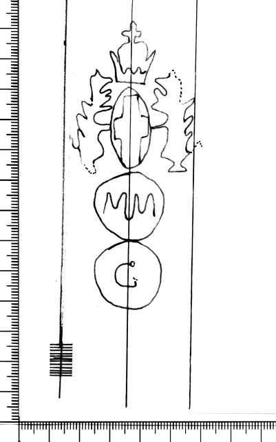 Tipo de filigrana: Sencilla Parte estudiada: Toda la filigrana Código del Motivo: U.02.02.07 Descripción: Dos círculos unidos. Sobre el primero, el escudo de Génova con corona y franqeuado por dos grifos. En el interior del primero MM. En el interior del segundo GCA/y un signo indeterminado Estructura: Tradicional de líneas Altura (mm): 85 Anchura (mm): 46 Tipo de papel: Verjurado Posición en la hoja: Medio centro Distancia entre corondeles: Posición en relación al texto: Origen de los datos: Datos obtenidos del original País de localizatión del molino: Italia Autor de los datos de este registro: María Dolores Díaz de Miranda Macías Estado de la hoja: Cortados todos los bordes Altura de la hoja: 312 Anchura de la hoja: 208 Color de la hoja: Natural Institución: Archivo Municipal de Oviedo.