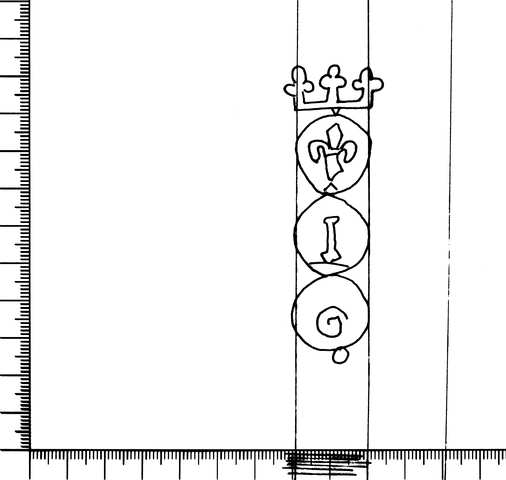 Tipo de filigrana: Sencilla Parte estudiada: Toda la filigrana Código del Motivo: U.03.03.05 Descripción: Tres círculos surmontados por una corona. En el interior del primero una flos de lis, del segundo una I y del tercero un signo no identificado Estructura: Tradicional de líneas Altura (mm): 80 Anchura (mm): 27 Tipo de papel: Verjurado Posición en la hoja: Medio centro Distancia entre corondeles: Posición en relación al texto: Origen de los datos: Datos obtenidos del original País de localizatión del molino: Italia Autor de los datos de este registro: María Dolores Díaz de Miranda Macías Estado de la hoja: Cortados todos los bordes Altura de la hoja: 309 Anchura de la hoja: 205 Color de la hoja: Natural Institución: Archivo Municipal de Oviedo.