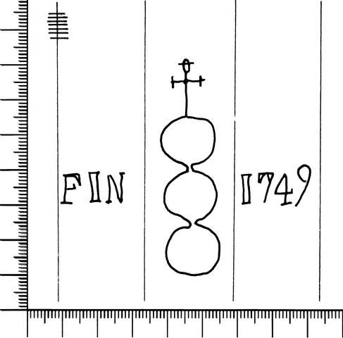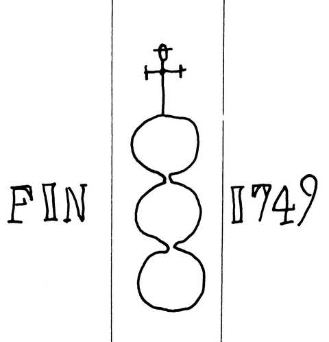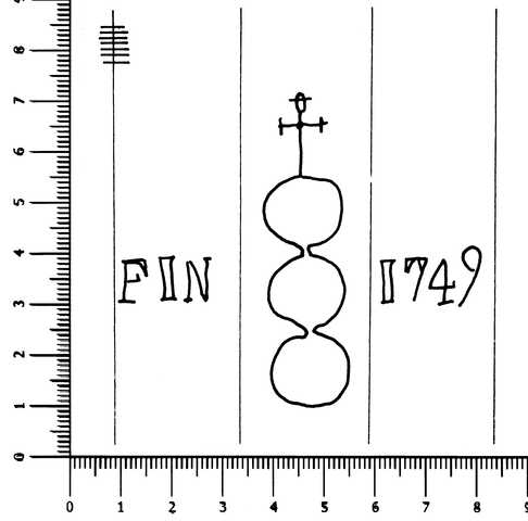 Tipo de filigrana: Sencilla Parte estudiada: Toda la filigrana Código del Motivo: U.03.03.08 Descripción: Tres círculos surmontados por una cruz, al costado izquierdo FIN, al derecho 1749. Estructura: Tradicional de líneas Altura (mm): 62 Anchura (mm): 71 Tipo de papel: Verjurado Posición en la hoja: Indeterminada Distancia entre corondeles: Posición en relación al texto: Origen de los datos: Datos obtenidos del original País de localizatión del molino: Posiblemente Francia. Tipo de uso: Papel para escribir Estado de la hoja: Cortados todos los bordes Altura de la hoja: 280 Anchura de la hoja: 210 Color de la hoja: Natural Institución: Archivo Histórico Eclesiástico de Vizcaya.