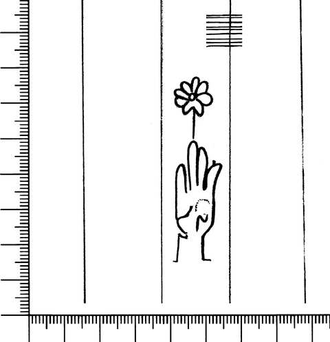 Tipo de filigrana: Sencilla Parte estudiada: Toda la filigrana Código del Motivo: B.03.01.00 Descripción: Mano con flor. En la palma elementos no identificados Estructura: Tradicional de líneas Altura (mm): 54 Anchura (mm): 15 Tipo de papel: Verjurado Posición en la hoja: Distancia entre corondeles: Posición en relación al texto: Origen de los datos: Datos obtenidos del original Autor de los datos de este registro: María Dolores Díaz de Miranda Macías Estado de la hoja: Cortados todos los bordes Altura de la hoja: 194 Anchura de la hoja: 138 Color de la hoja: Natural Institución: Archivo Histórico Eclesiástico de Vizcaya.