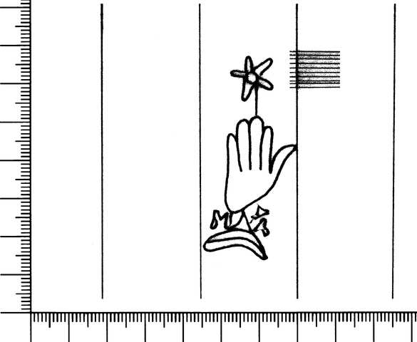 Tipo de filigrana: Sencilla Parte estudiada: Toda la filigrana Código del Motivo: B.02.05.00 Descripción: Mano con flor; Letra M entre el puño y la mano. Estructura: Tradicional de líneas Altura (mm): 54 Anchura (mm): 25 Tipo de papel: Verjurado Posición en la hoja: Distancia entre corondeles: Posición en relación al texto: Origen de los datos: Datos obtenidos del original País de localizatión del molino: Francia Autor de los datos de este registro: María Dolores Díaz de Miranda Macías Estado de la hoja: Cortados todos los bordes Altura de la hoja: 320 Anchura de la hoja: 220 Color de la hoja: Natural Institución: Archivo Histórico Eclesiástico de Vizcaya.