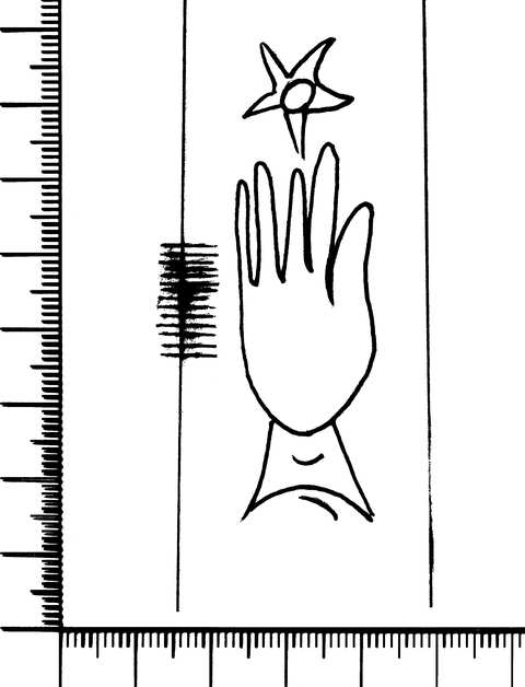 Tipo de filigrana: Sencilla Parte estudiada: Toda la filigrana Código del Motivo: B.01.02.04 Descripción: Mano con los dedos separados. Encima estrella. Estructura: Tradicional de líneas Altura (mm): 65 Anchura (mm): 17 Tipo de papel: Verjurado Posición en la hoja: Distancia entre corondeles: Posición en relación al texto: Origen de los datos: Datos obtenidos del original Autor de los datos de este registro: María Dolores Díaz de Miranda Macías Estado de la hoja: Cortados todos los bordes Altura de la hoja: 294 Anchura de la hoja: 208 Color de la hoja: Natural Institución: Archivo Histórico Eclesiástico de Vizcaya.
