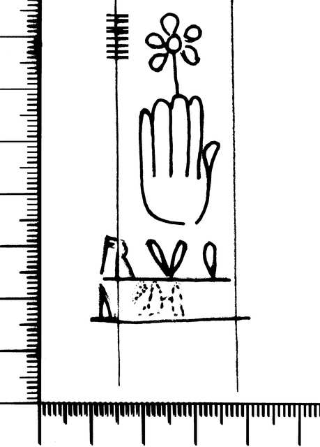 Tipo de filigrana: Sencilla Parte estudiada: Toda la filigrana Código del Motivo: B.02.05.00 Descripción: Mano con los dedos unidos. Encima flor.Debajo letras FRVI ?. Estructura: Tradicional de líneas Altura (mm): 60 Anchura (mm): 31 Tipo de papel: Verjurado Posición en la hoja: Distancia entre corondeles: Posición en relación al texto: Origen de los datos: Datos obtenidos del original País de localizatión del molino: Francia Autor de los datos de este registro: María Dolores Díaz de Miranda Macías Estado de la hoja: Cortados todos los bordes Altura de la hoja: 280 Anchura de la hoja: 210 Color de la hoja: Natural Institución: Archivo Histórico Eclesiástico de Vizcaya.