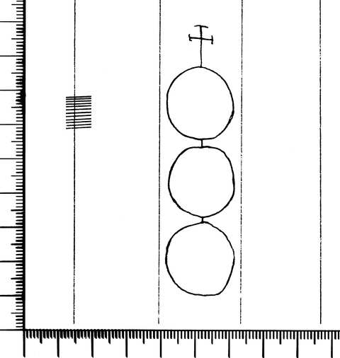 Tipo de filigrana: Sencilla Parte estudiada: Toda la filigrana Código del Motivo: U.03.02.02 Descripción: Tres círculos surmontados por una cruz. Estructura: Tradicional de líneas Altura (mm): 79 Anchura (mm): 20 Tipo de papel: Verjurado Posición en la hoja: Medio centro Distancia entre corondeles: Posición en relación al texto: Origen de los datos: Datos obtenidos del original Autor de los datos de este registro: María Dolores Díaz de Miranda Macías Estado de la hoja: Cortados todos los bordes Altura de la hoja: 295 Anchura de la hoja: 205 Color de la hoja: Natural Institución: Archivo del Monasterio de Santo Domingo de Silos.