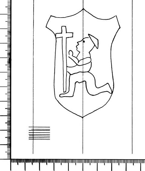 Tipo de filigrana: Sencilla Parte estudiada: Toda la filigrana Código del Motivo: T.02.01.02 Descripción: Escudo. En su interior, un santo aureolado con una cruz en la mano y en postura de genuflexión. Estructura: Tradicional de líneas Altura (mm): 75 Anchura (mm): 52 Tipo de papel: Verjurado Posición en la hoja: Medio centro Distancia entre corondeles: Posición en relación al texto: Origen de los datos: Datos obtenidos del original País de localizatión del molino: Italia Estado de la hoja: Cortados todos los bordes Altura de la hoja: 385 Anchura de la hoja: 260 Color de la hoja: Natural Estado de conservación: Restaurado Institución: Particular
