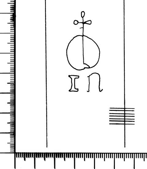 Tipo de filigrana: Sencilla Parte estudiada: Toda la filigrana Código del Motivo: U.01.01.00 Descripción: Monograma. Círculo con una cruz. Debajo, las letran IN. Estructura: Tradicional de líneas Altura (mm): 40 Anchura (mm): 19 Tipo de papel: Verjurado Posición en la hoja: Medio centro Distancia entre corondeles: Posición en relación al texto: Origen de los datos: Datos obtenidos del original Estado de la hoja: Cortados todos los bordes Altura de la hoja: 385 Anchura de la hoja: 520 Color de la hoja: Natural Estado de conservación: Restaurado Institución: Particular