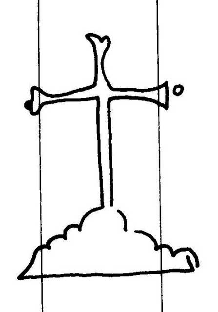 Tipo de filigrana: Sencilla Parte estudiada: Toda la filigrana Código del Motivo: S.01.09.01 Descripción: Cruz del calvario. Estructura: Tradicional de líneas Altura (mm): 47 Anchura (mm): 35 Tipo de papel: Verjurado Posición en la hoja: Derecha centro Nº de corondeles en la hoja: 19 Distancia entre corondeles: Situada entre el corondel 14 y el corondel 17 Posición en relación al texto: Origen de los datos: Datos obtenidos del original País de localizatión del molino: España Lugar del molino: Alcoy, Alicante. Fabricante: Miguel Ivan Tort Tipo de uso: Papel sellado Estado de la hoja: Sin cortar bordes Altura de la hoja: 310 Anchura de la hoja: 424 Color de la hoja: Natural Institución: Archivo Municipal de Oviedo.