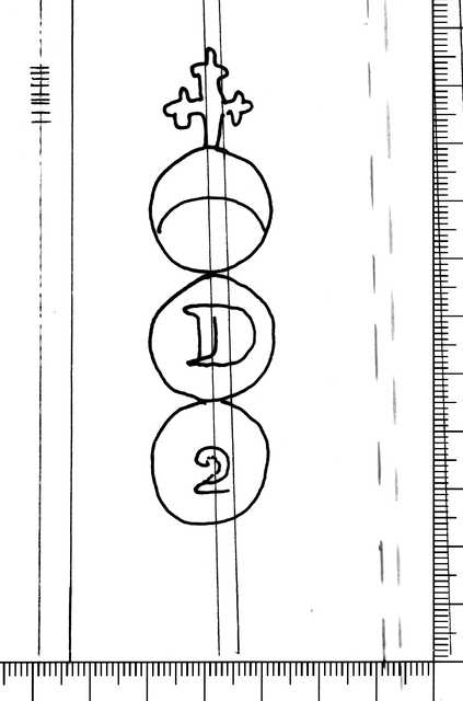 Tipo de filigrana: Sencilla Parte estudiada: Toda la filigrana Código del Motivo: U.03.03.11 Descripción: Tres círculos unidos. Sobre el primero, una cruz trebolada y en el interior, media luna. En el segundo, las letras LC. En el tercero, las letras SA. Debajo y fuera, signo indeterminado. Estructura: Tradicional de líneas Altura (mm): 90 Anchura (mm): 25 Tipo de papel: Verjurado Posición en la hoja: Izquierda centro Nº de corondeles en la hoja: 18 Distancia entre corondeles: Situada entre el corondel 3 y el corondel 5 Posición en relación al texto: Perpendicular al texto hacia arriba Origen de los datos: Datos obtenidos del original País de localizatión del molino: Italia Autor de los datos de este registro: María Dolores Díaz de Miranda Macías Estado de la hoja: Cortados todos los bordes Altura de la hoja: 304 Anchura de la hoja: 420 Color de la hoja: Natural Institución: Archivo Municipal de Oviedo.