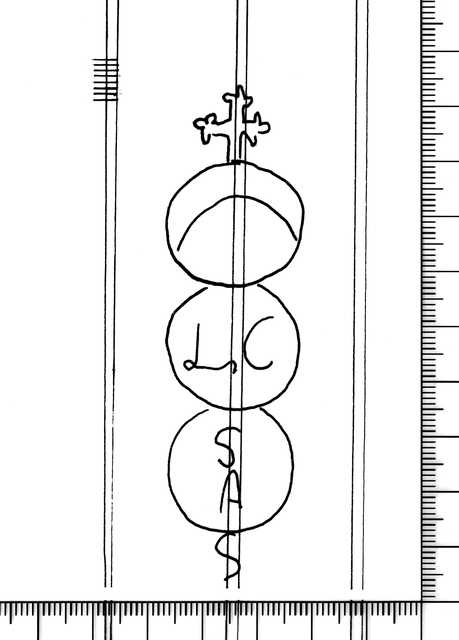 Tipo de filigrana: Sencilla Parte estudiada: Toda la filigrana Código del Motivo: U.99.00.00 Descripción: Óvalo en forma de corazón. Dentro, las letras OA. Fuera, una cruz. Estructura: Tradicional de líneas Altura (mm): 49 Anchura (mm): 29 Tipo de papel: Verjurado Posición en la hoja: Izquierda centro Nº de corondeles en la hoja: 18 Distancia entre corondeles: Situada entre el corondel 4 y el corondel 6 Posición en relación al texto: Perpendicular al texto hacia abajo Origen de los datos: Datos obtenidos del original Autor de los datos de este registro: María Dolores Díaz de Miranda Macías Estado de la hoja: Sin cortar bordes Altura de la hoja: 321 Anchura de la hoja: 429 Color de la hoja: Natural Estado de conservación: Restaurado Institución: Archivo del Monasterio de Sant Pere de les Puel·les, Barcelona