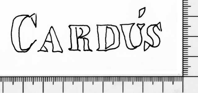 Tipo de filigrana: Doble Parte estudiada: Derecha Código del Motivo: W.04.02.00 Descripción: Filigrana doble. Filigrana izquierda: letra E. Filigrana derecha: CARDÚS. Estructura: Tradicional de líneas Altura (mm): 19 Anchura (mm): 75 Tipo de papel: Posición en la hoja: Derecha centro Distancia entre corondeles: Posición en relación al texto: Origen de los datos: Datos obtenidos del original Estado de la hoja: Cortados todos los bordes Altura de la hoja: 310 Anchura de la hoja: 420 Color de la hoja: Natural Estado de conservación: Bueno Institución: Parroquia Folgarolas, Barcelona.