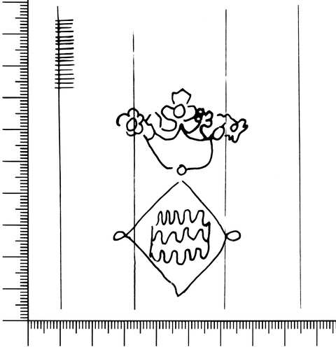 Tipo de filigrana: Sencilla Parte estudiada: Toda la filigrana Código del Motivo: T.04.03.00 Descripción: Escudo de Gerona. Estructura: Tradicional de líneas Altura (mm): 65 Anchura (mm): 40 Tipo de papel: Verjurado Posición en la hoja: Medio centro Nº de corondeles en la hoja: 8 Distancia entre corondeles: Situada entre el corondel 3 y el corondel 6 Posición en relación al texto: Origen de los datos: Información adicional: Todo el libro contiene la misma filigrana. Lugar del molino: Gerona Estado de la hoja: Cortados todos los bordes Altura de la hoja: 285 Anchura de la hoja: 200 Color de la hoja: Natural Institución: Biblioteca Pública de Gerona.