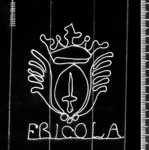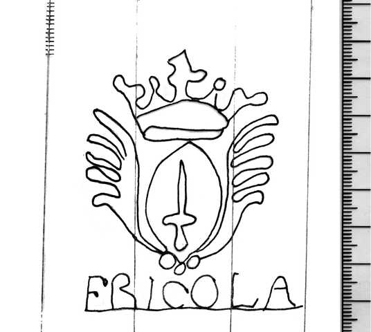 Tipo de filigrana: Sencilla Parte estudiada: Toda la filigrana Código del Motivo: T.02.09.01 Descripción: Escudo con espada en el interior. Estructura: Tradicional de líneas Altura (mm): 70 Anchura (mm): 52 Tipo de papel: Verjurado Posición en la hoja: Derecha centro Nº de corondeles en la hoja: 17 Distancia entre corondeles: Situada entre el corondel 12 y el corondel 15 Posición en relación al texto: Origen de los datos: Estado de la hoja: Cortado borde superior Altura de la hoja: 278 Anchura de la hoja: 410 Color de la hoja: Natural Institución: Parroquia de Sitges, Barcelona.
