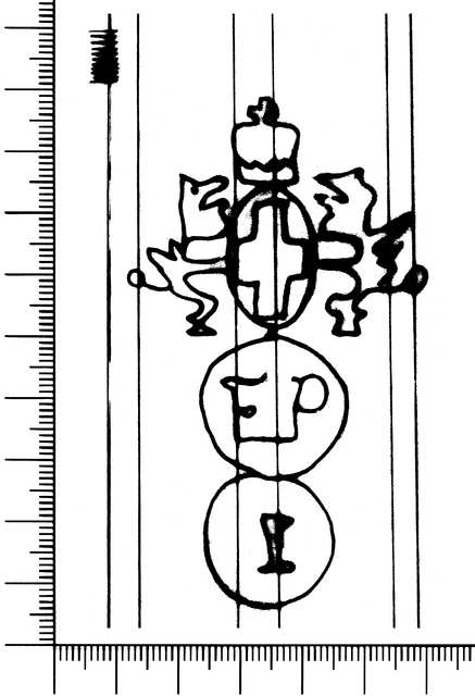 Tipo de filigrana: Sencilla Parte estudiada: Toda la filigrana Código del Motivo: U.02.02.07 Descripción: Dos círculos unidos. Sobre el primero, el escudo de Génova y en el interior, las letras F P. En el segundo, la letra I. Estructura: Tradicional de líneas Altura (mm): 82 Anchura (mm): 49 Tipo de papel: 9 Posición en la hoja: Medio centro Distancia entre corondeles: Situada entre el corondel 3 y el corondel 6 Posición en relación al texto: Perpendicular al texto hacia arriba Origen de los datos: Datos obtenidos del original Información adicional: A la izquierda de la filigrana tiene tres corondeles dobles y la mitad de otro. País de localizatión del molino: Italia Autor de los datos de este registro: María Dolores Díaz de Miranda Macías Estado de la hoja: Bordes sin determinar Altura de la hoja: 298 Anchura de la hoja: 204 Color de la hoja: Natural Estado de conservación: Bueno pH del papel: Verjurado Institución: Acuerdos A-46.