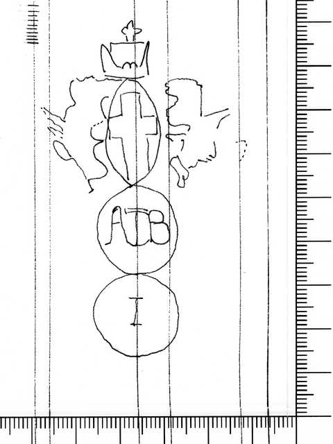 Tipo de filigrana: Sencilla Parte estudiada: Toda la filigrana Código del Motivo: U.02.02.07 Descripción: Dos círculos unidos. Sobre el primero, el escudo de Génova y en el interior, las letras ATB. En el segundo, la letra I. Estructura: Tradicional de líneas Altura (mm): 78 Anchura (mm): [49] Tipo de papel: Verjurado Posición en la hoja: Medio centro Nº de corondeles en la hoja: 9 Distancia entre corondeles: Media entre 16 y 20 Situada entre el corondel 3 y el corondel 7 Posición en relación al texto: Perpendicular al texto hacia abajo Origen de los datos: Datos obtenidos del original Información adicional: A la izquierda de la filigrana tiene tres corondeles dobles y la mitad de otro. País de localizatión del molino: Italia Estado de la hoja: Bordes sin determinar Altura de la hoja: 300 Anchura de la hoja: 205 Color de la hoja: Natural Estado de conservación: Bueno Institución: Archivo Municipal de Oviedo.